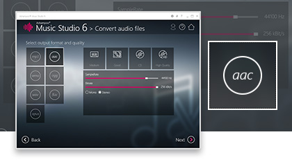Ashampoo Music Studio 6 wreszcie wspiera popularne formaty Apple, jak AAC i M4A. Z łatwością nagrywaj muzykę na nośnik i konwertuj piosenki iTunes do MP3 lub WMA dla lepszych doświadczeń muzycznych na domowym sprzęcie Hi-Fi lub urządzeniach bez programu iTunes!